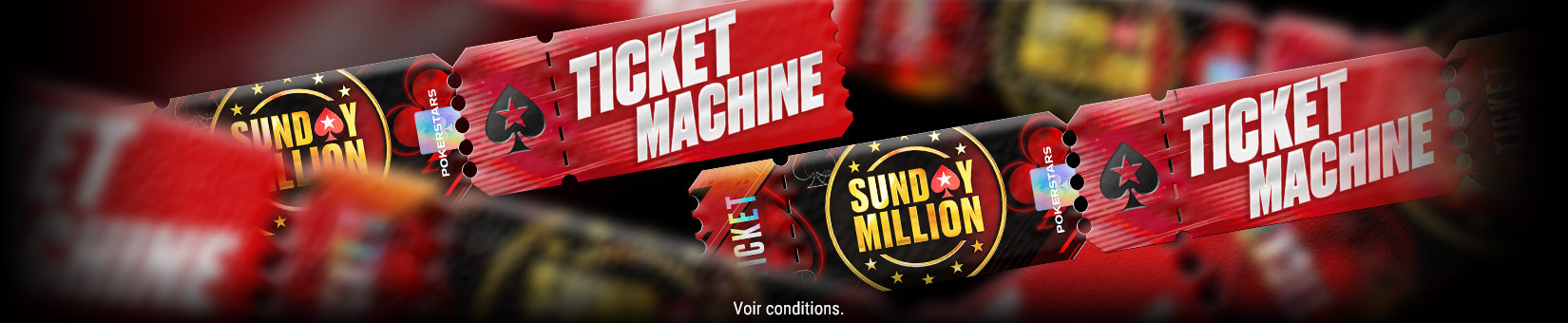 Les joueurs qui accomplissent des défis poker pendant la période de l'offre peuvent remporter des tickets pour le tirage au sort du Distributeur de Tickets Sunday Million, qui leur offre l'opportunité de gagner un ticket Sunday Million à 109 $.
